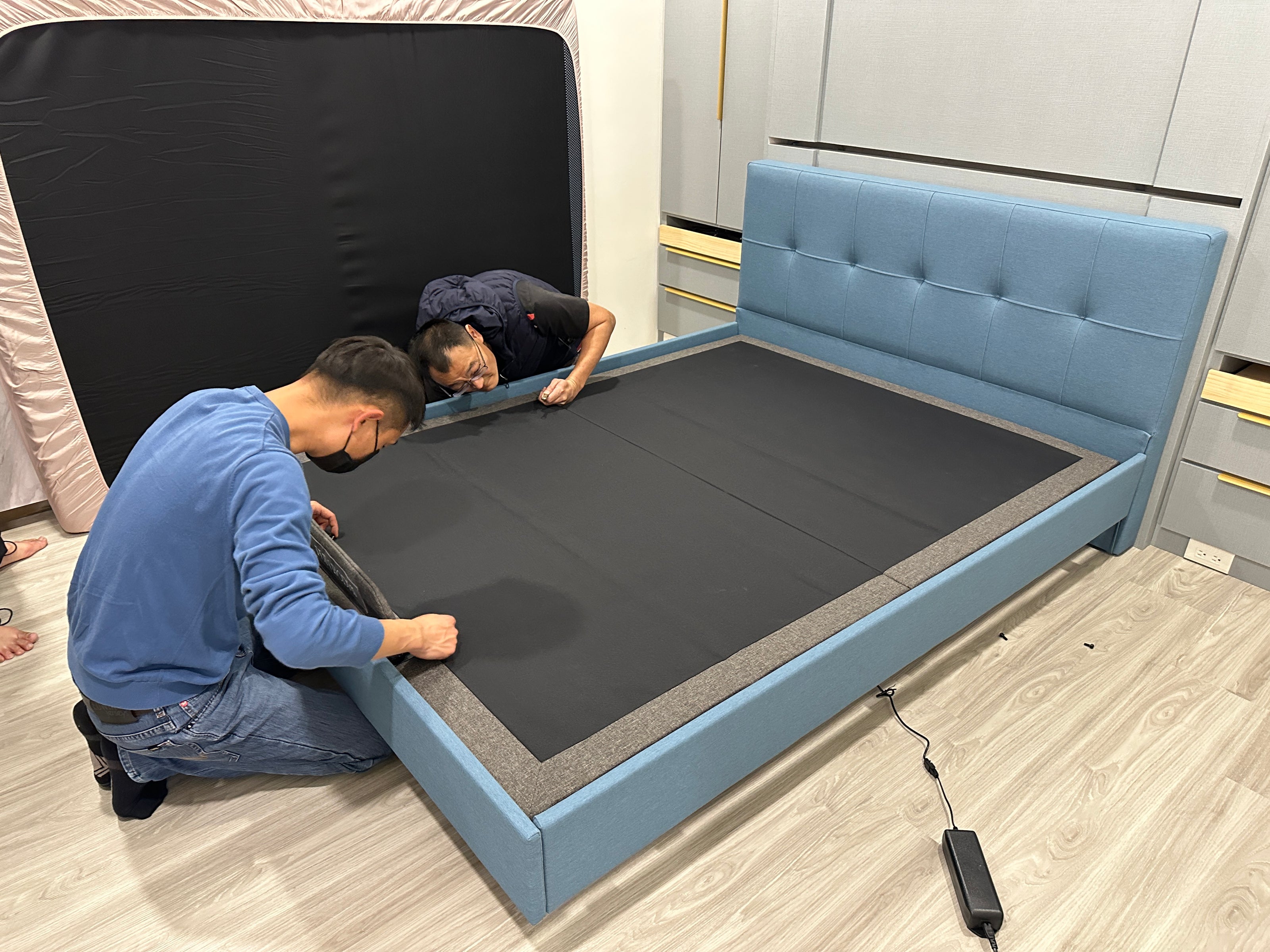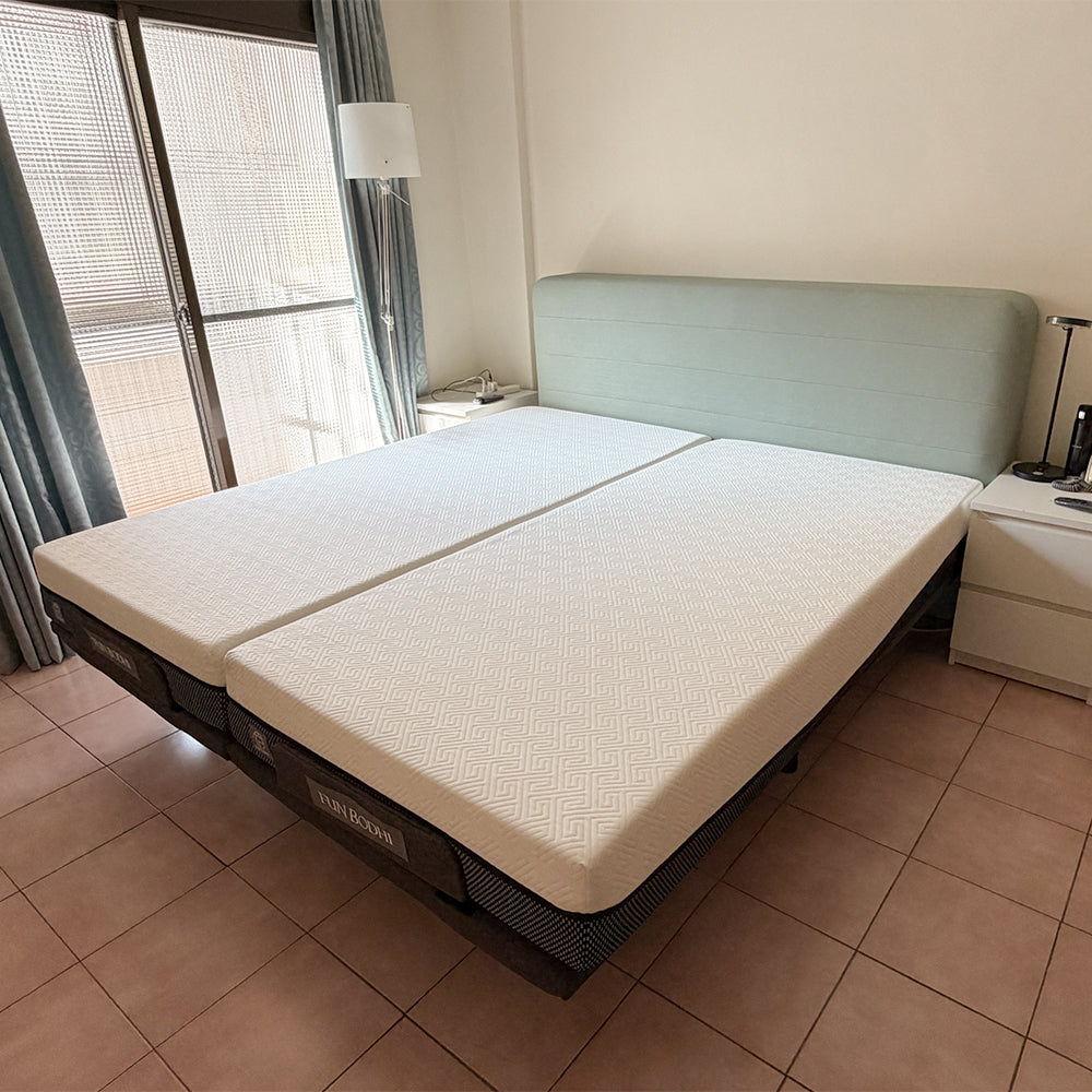 兩張單人電動床合併成雙人款。分床不分房,各自作息互不打擾。