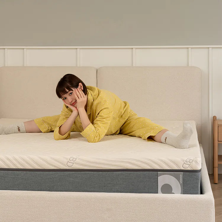 QSHION 採用4D高涵氧空氣纖維,依照不同密度與厚度,組合出能分層承托身體重量的床墊本體。有效釋放身體壓力,真正緩解身體的疲勞,為良好的睡眠做足準備。