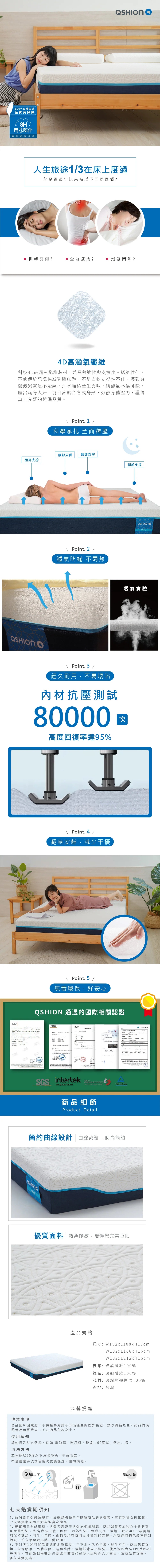 透氣紓壓防螨雙人床墊 高16cm|QSHION