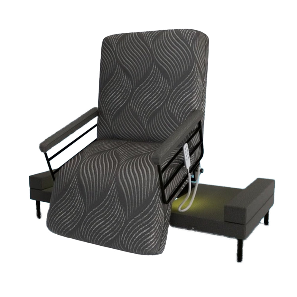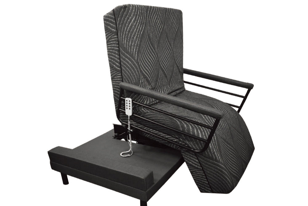 - 具有穩定可靠的旋轉輔助下床功能,整個過程安全平穩,緩衝對脊椎、膝蓋部位的傷害,電動推力可讓使用者的下床動作得到很大的幫助,減輕護理人員的照護壓力。