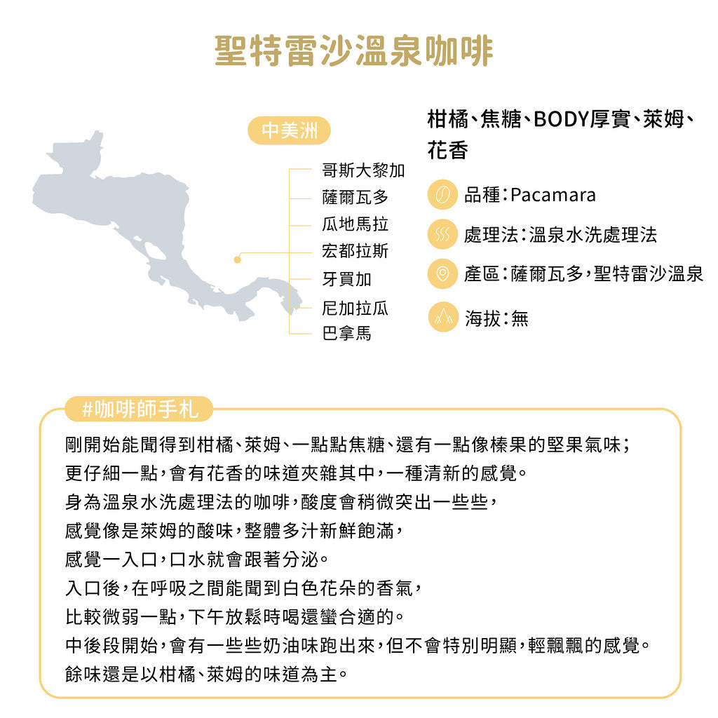FUN057 聖特雷沙溫泉咖啡 薩爾瓦多 聖特雷沙溫泉 溫泉水洗 (一磅460g)