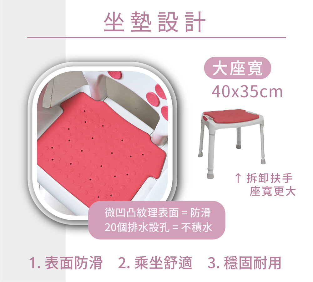 - 坐墊可拆、防滑角柱設計,止滑效果更好。