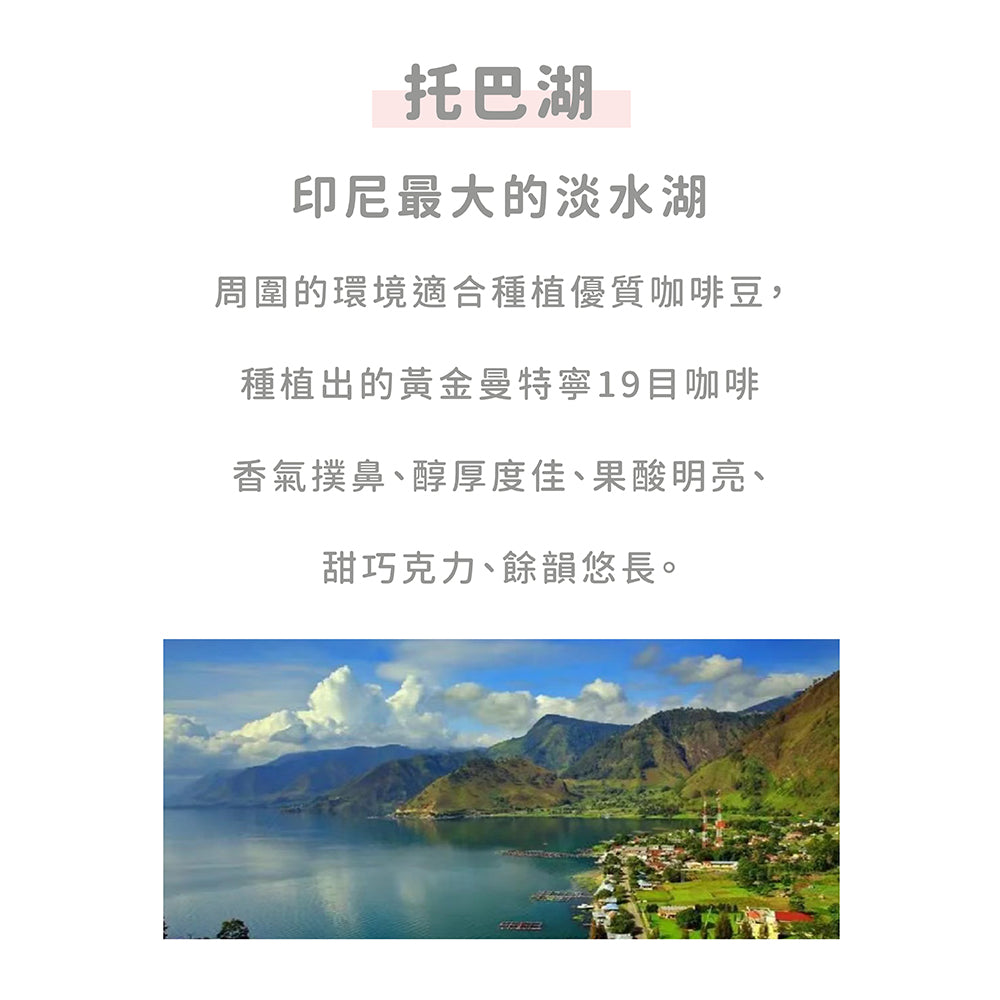 • 產區信息:北蘇門答臘,托巴湖 Simalung Karo hiphland 小農
